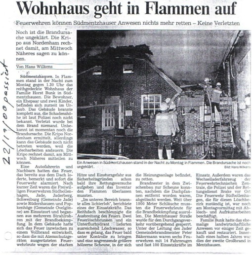 Bericht in der Nordwest Zeitung nach dem Brand